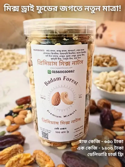 ব্যস্ত জীবনের দৌড়ঝাঁপে শরীরকে সুস্থ রাখতে দরকার পুষ্টিকর খাবার। আমাদের প্রিমিয়াম মিক্স নাটে আছে বাছাই করা বাদাম, প্রাকৃতিক শক্তি আর খাঁটি পুষ্টির পারফেক্ট ব্যালান্স। প্রতিদিন এক মুঠো—ক্লান্তি কমে, এনার্জি বাড়ে, মন থাকে ফ্রেশ। স্বাস্থ্য নিয়ে কম্প্রোমাইজ নয়, স্মার্ট লাইফের স্মার্ট স্ন্যাক।